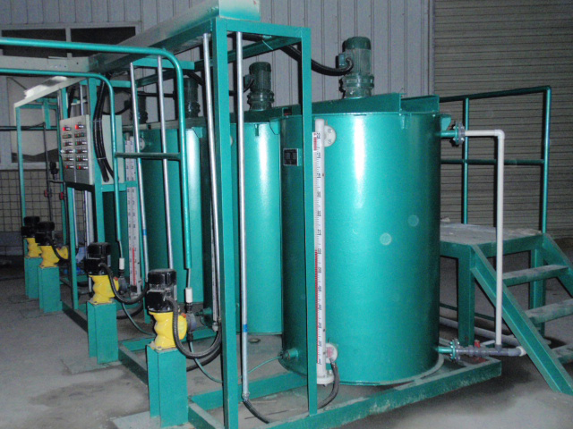 加藥裝置由溶液罐、若干法蘭、閥門等組成。配置兩臺(tái)計(jì)量泵,一用一備,這樣方便用戶在不停機(jī)狀態(tài)下進(jìn)行檢修、更換配件。